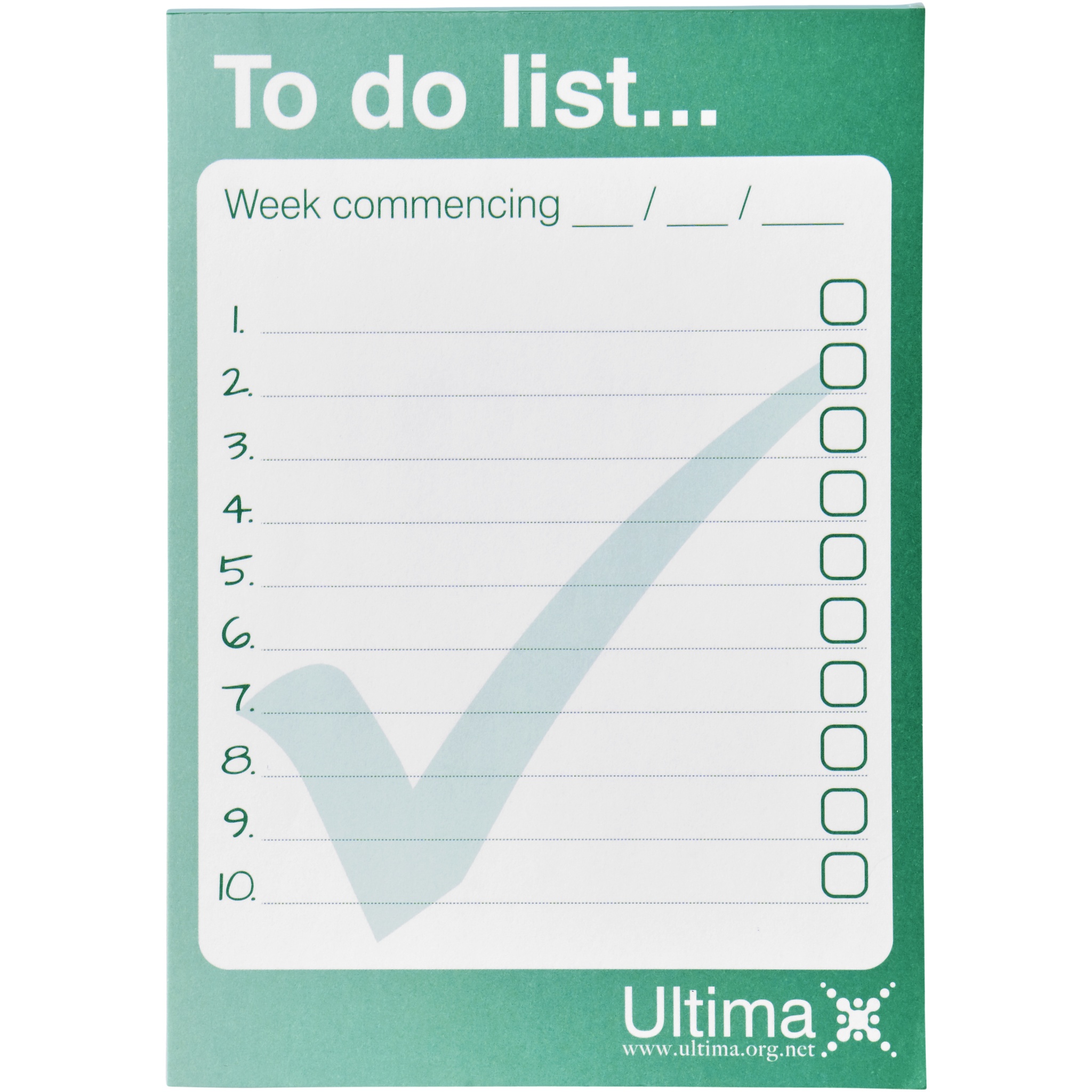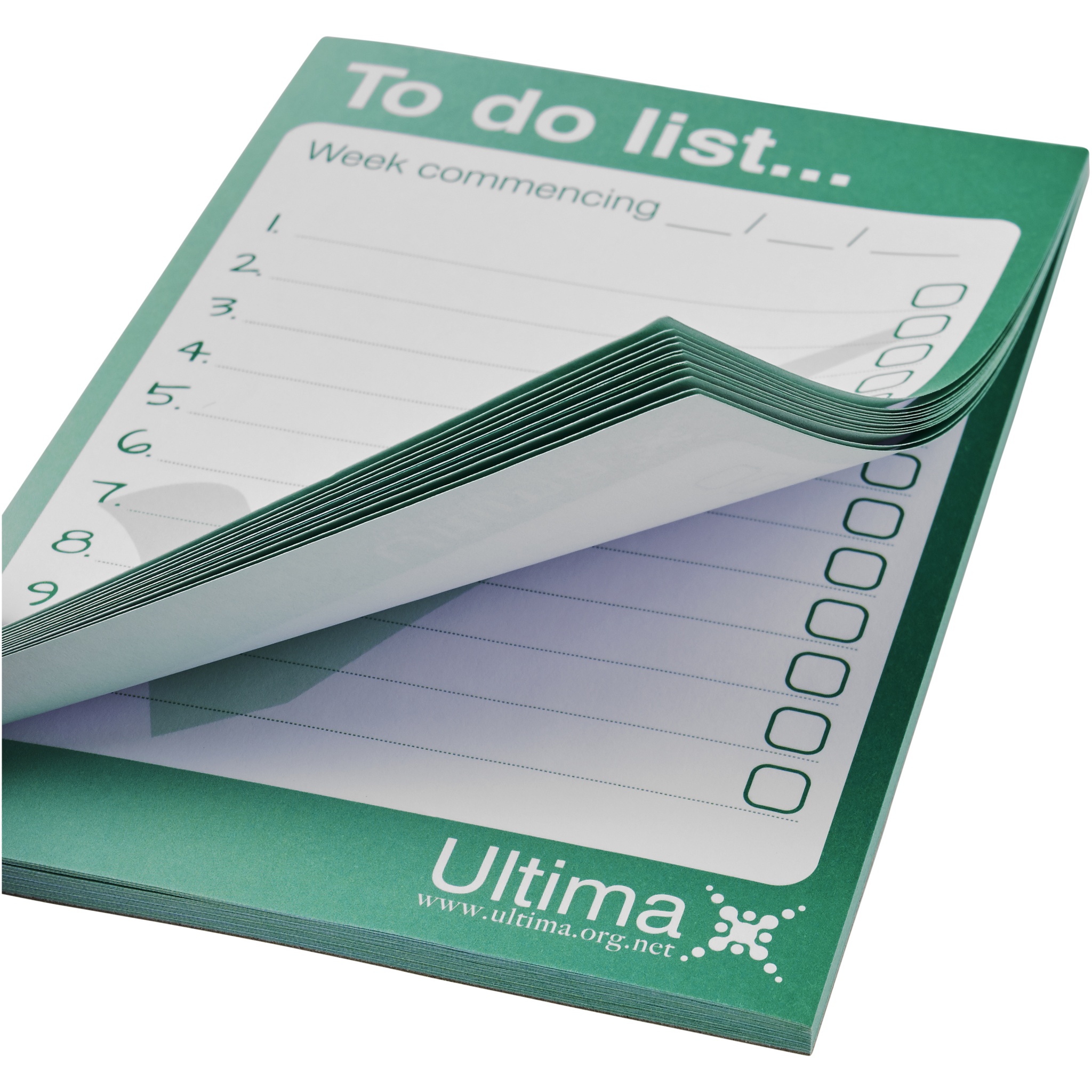 Weißer Desk-Mate® A6 Notizblock mit 80g/m2 Papier. Vollfarbdruck auf jedem Blatt möglich. Erhältlich in 3 Größen: 25, 50, 100 Blatt.
