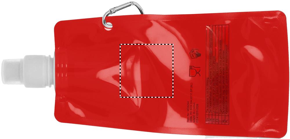 Faltbare Wasserflasche aus BPA freiem PET mit Alu-Karabiner. Füllmenge: 480 ml.