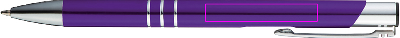 Metallkugelschreiber mit blauschreibender Mine. Ihre Werbung gravieren wir unterhalb des Clips.