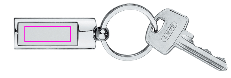 Schicker Schlüsselanhänger aus mattiertem und glänzendem Metall. Ihr Logo gravieren wir auf das matte Mittelstück. Doming auf Anfrage möglich.