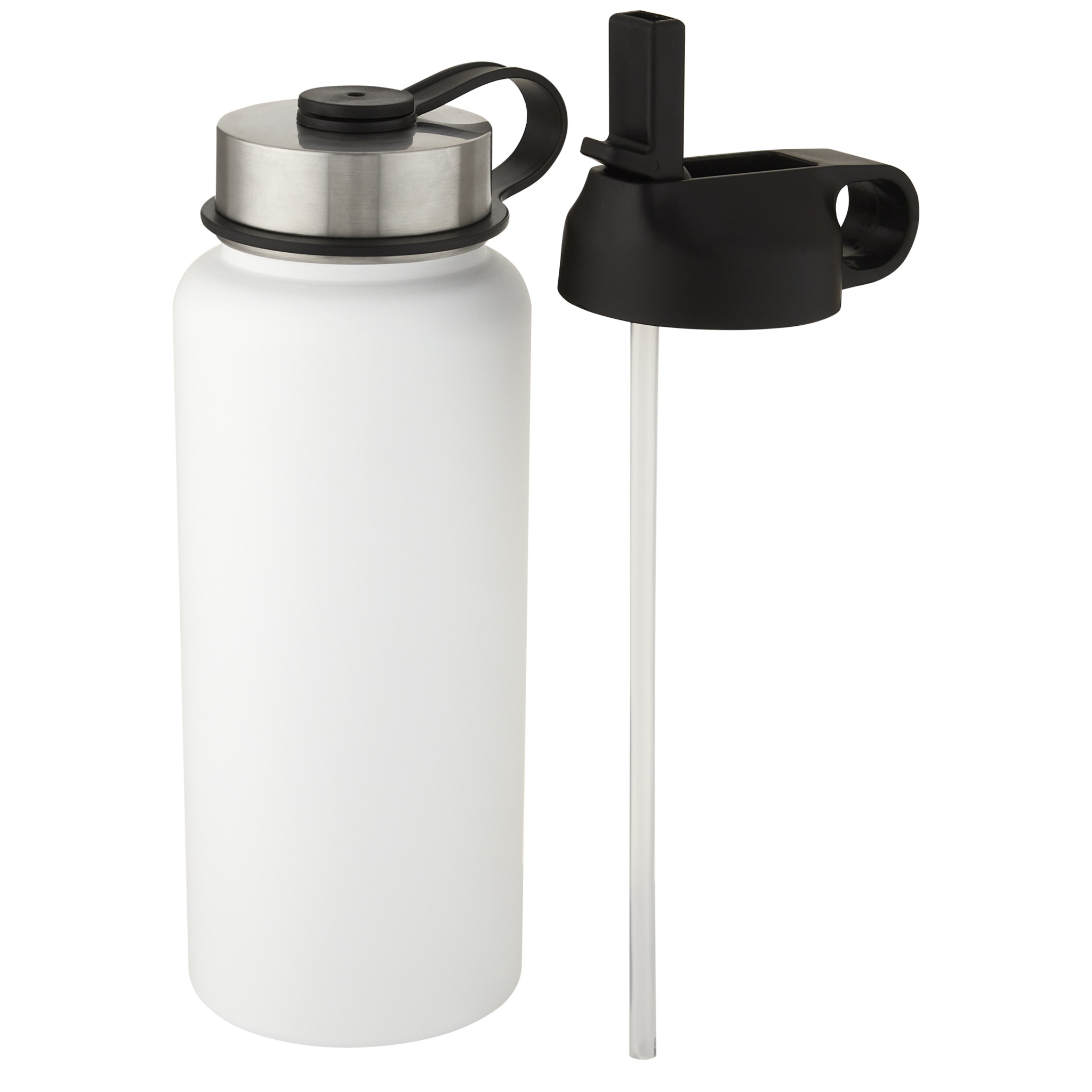 Zwei-in-Eins-Sportflasche aus doppelwandigem Edelstahl mit Kupfer-Vakuum-Isolierung und 2 Deckeln: ein Deckel mit Strohhalm für leichtes Trinken und ein auslaufsicherer Schraubdeckel mit Handschlaufe. Die isolierte Konstruktion aus 18/8-Edelstahl verhindert die Bildung von Kondenswasser an der Außenseite der Flasche, und die trendige Pulverbeschichtung macht sie besonders robust. Große Öffnung für einfaches Befüllen, Ausgießen und Reinigen. BPA-frei, geprüft und zugelassen nach dem deutschen Lebensmittelrecht (LFGB). Auf Phthalate geprüft und zugelassen gemäß den REACH-Vorschriften. Perfekt für Eiswürfel. Das Volumen beträgt 1 Liter. Handwäsche empfohlen. Verpackt in einer Geschenkbox aus Recyclingkarton.