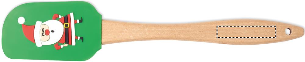 Teigspachtel aus Silikon mit Holzgriff und weihnachtlichem Motiv.