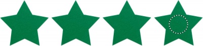 Set mit 4 Untersetzern aus RPET-Filz in Form eines Sterns. Lieferung in einer Schachtel aus Kraftpapier.