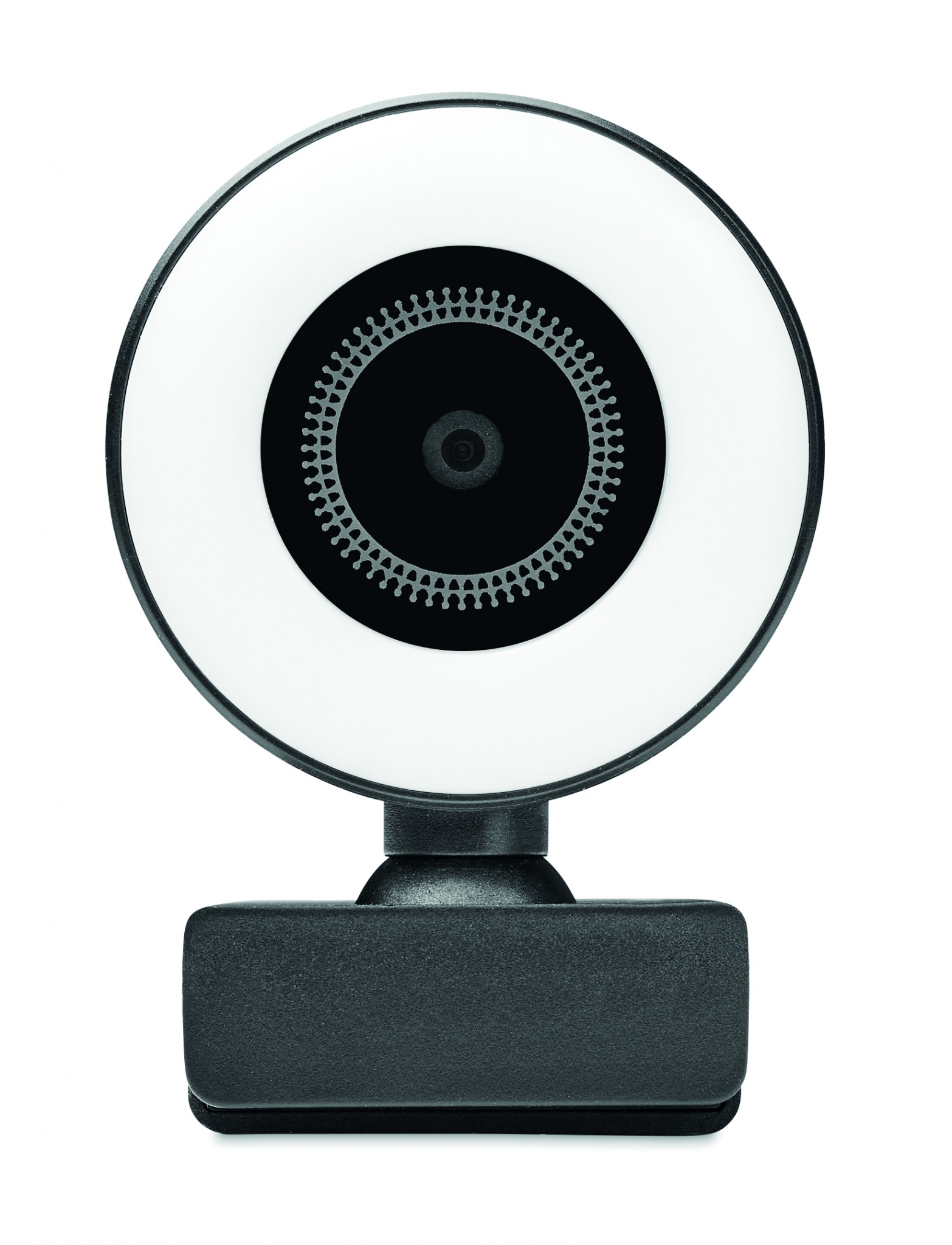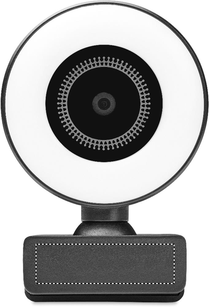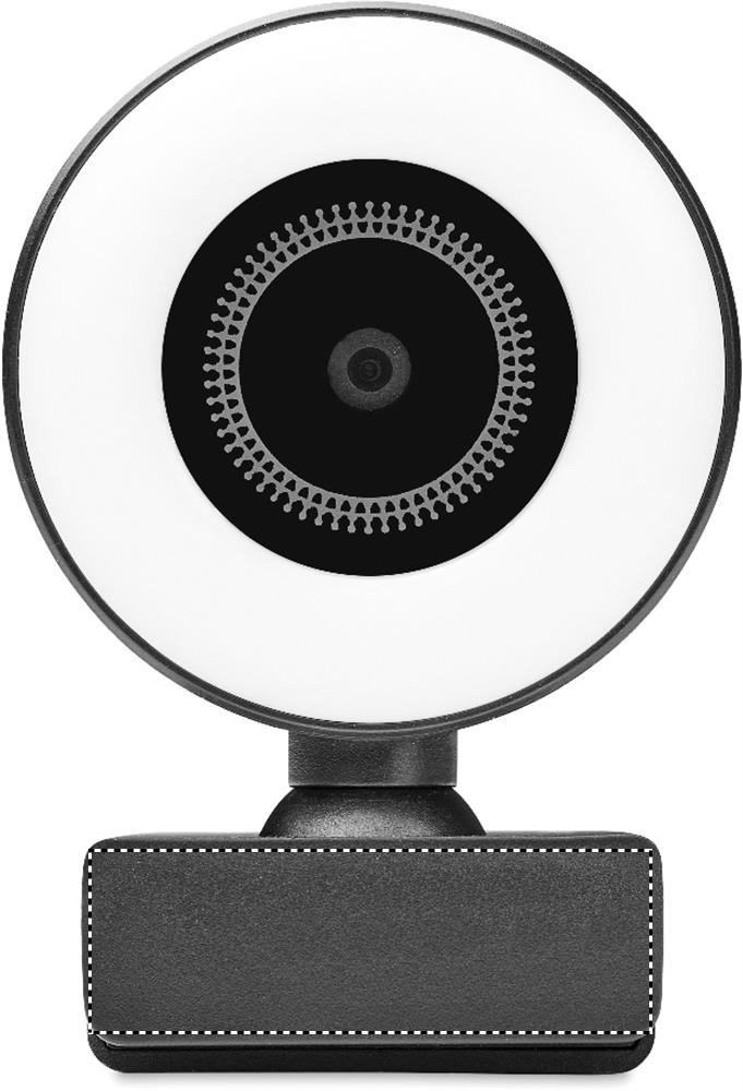 Streaming 1080P HD webcam in ABS with built-in microphone and adjustable ring light.