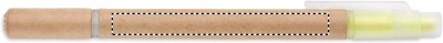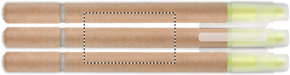 2 in 1 recycled carton barrel ball pen and yellow highlighter. Blue ink.