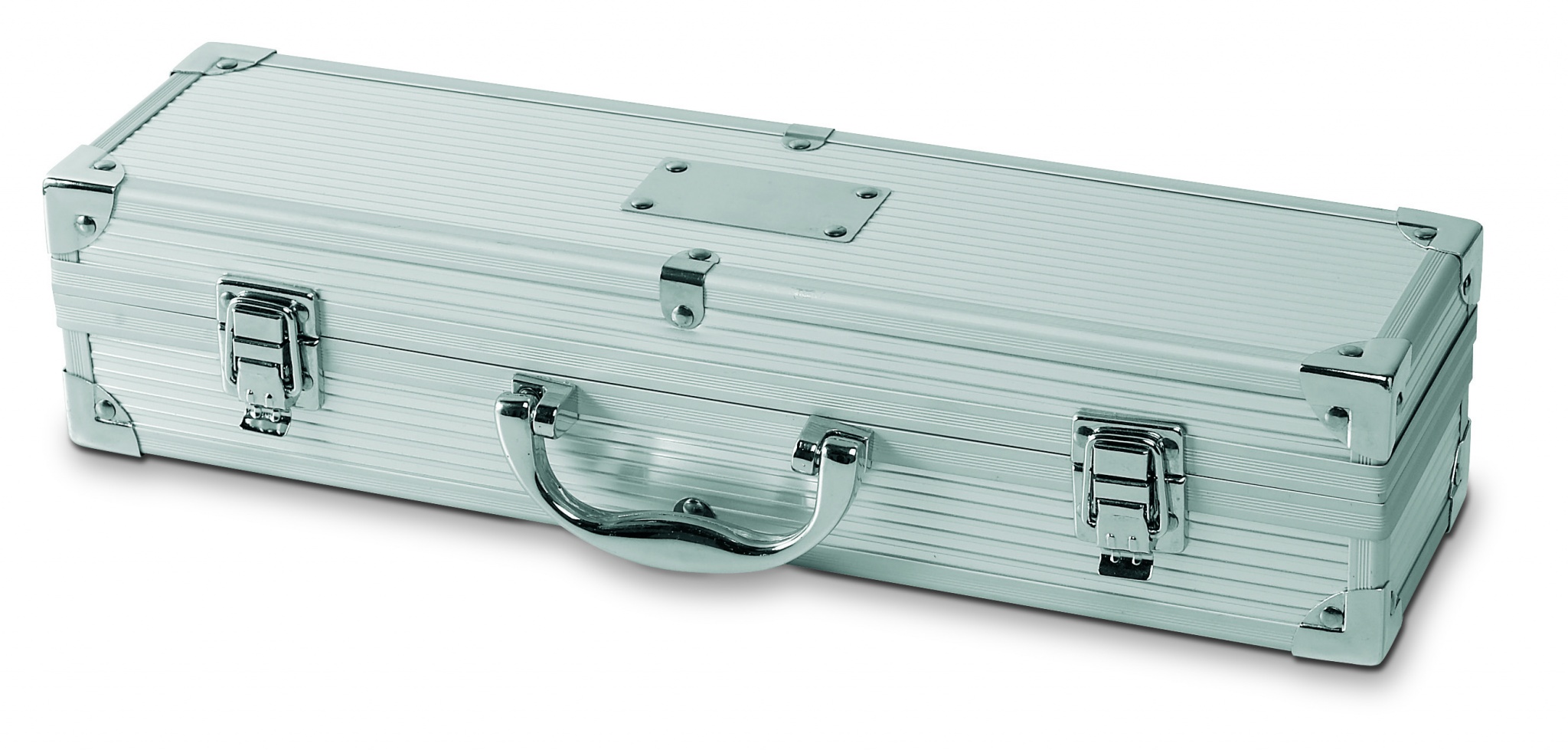 Aluminium suitcase includes 3 stainless steel BBQ tools. Plate for logo imprint.