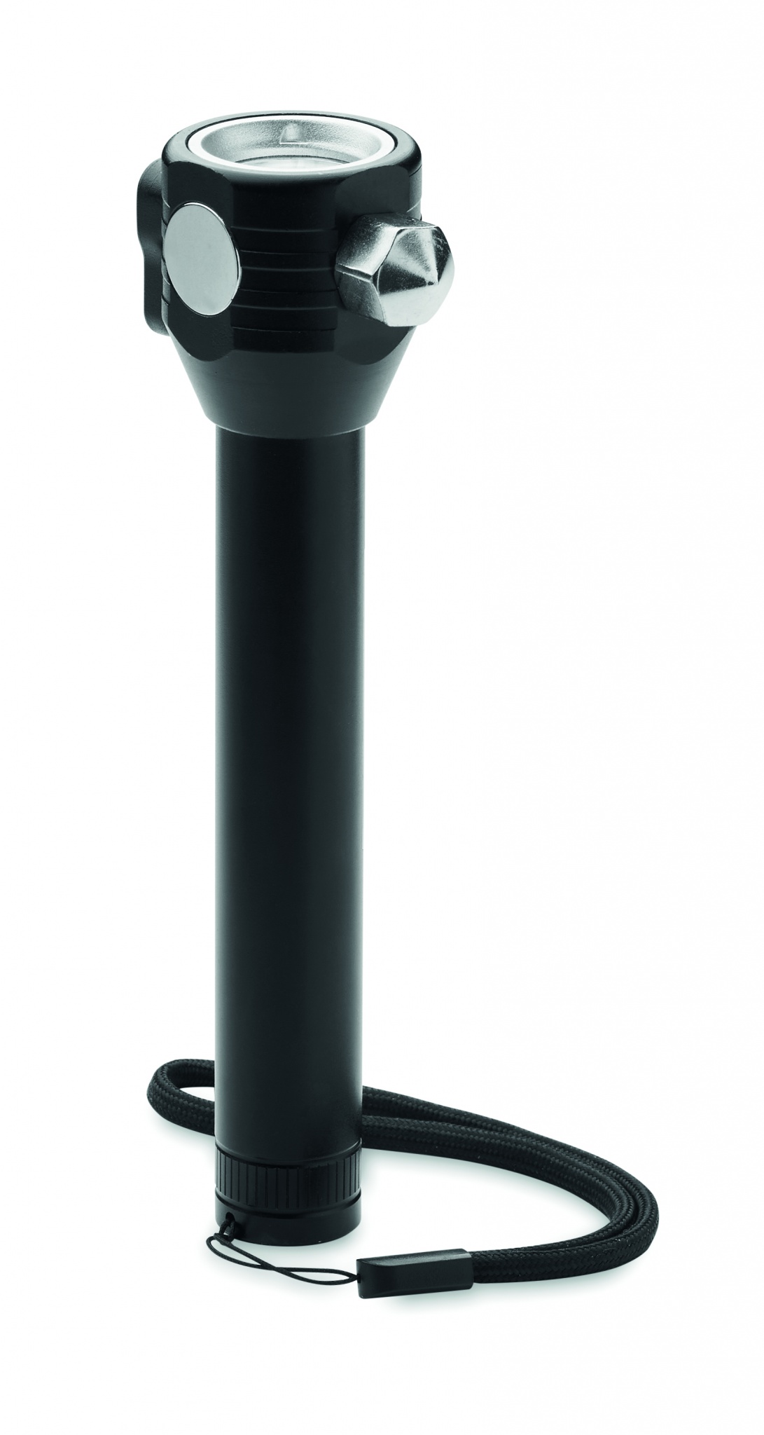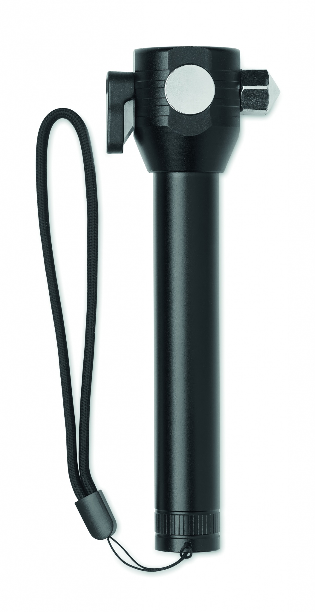 Logo trade promotional item photo of: 3-in-1 aluminum flashlight with an emergency hammer and seatbelt cutter, customizable with printing