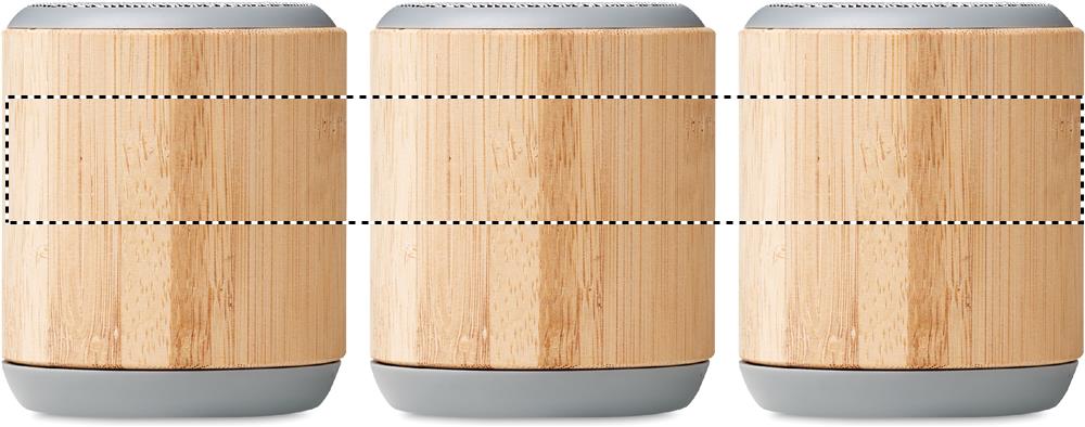 5.3 wireless speaker in bamboo cover and ABS on top with PU strap. 1 Rechargeable Li-Ion 300 mAh battery. Output data: 3W, 4 Ohm. Playing time approx. 2h. Bamboo is a natural product, there may be slight variations in colour and size per item, which can affect the final decoration outcome.