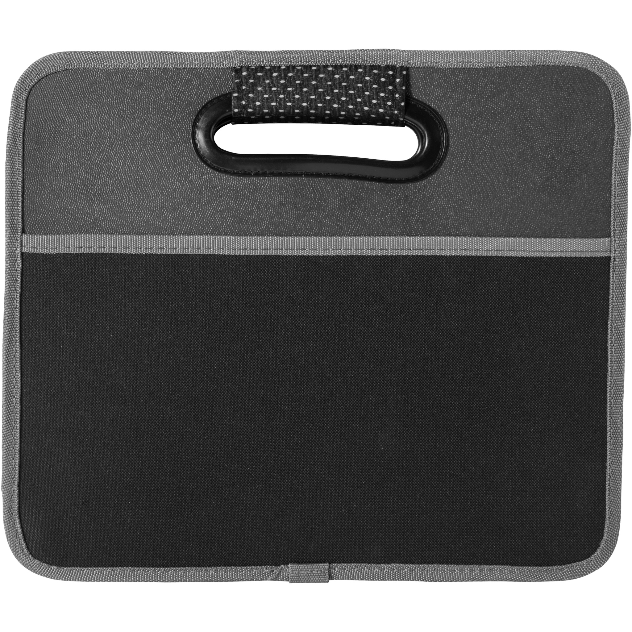 Accordion trunk organiser. This trunk organizer keeps your car clean and organized and folds neatly to store when not in use. 600D polyester material with two outer pockets for extra storage and two inner compartments. Padded handles for easy carrying. Packed with a STAC hangtag. Exclusive design. 600D Polyester.