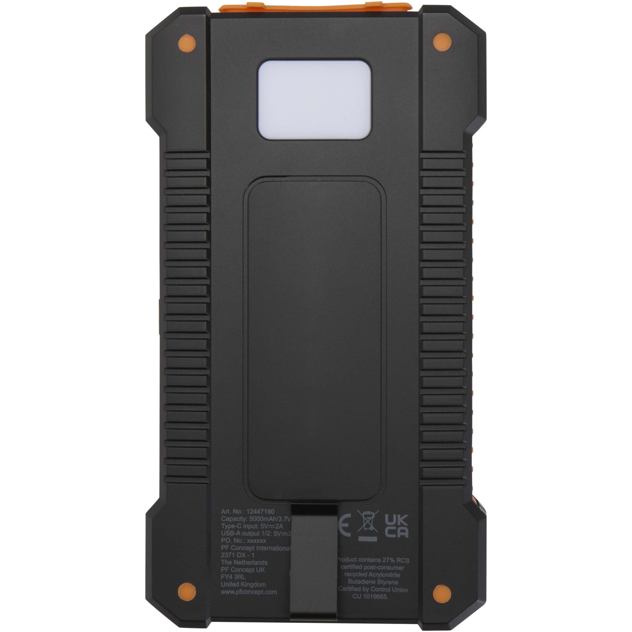 Logotrade corporate gifts photo of: Altair 5000 mAh 10W recycled plastic rugged solar power bank with built-in torch