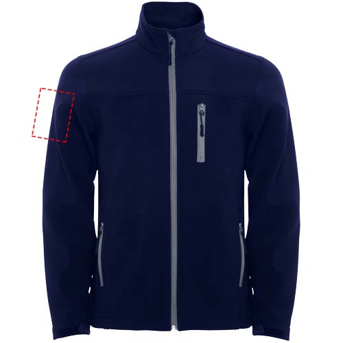2-layer softshell. Inverted sealed effect zip with matching chin protector and zipper puller. Three zip pockets with matching puller. Velcro fasteners in cuffs. Adjustable bottom hem with elastic drawcord and stoppers. 1000 mm water resistant. Wind-proof fabric. The model is 129 cm and is wearing size 5/6.