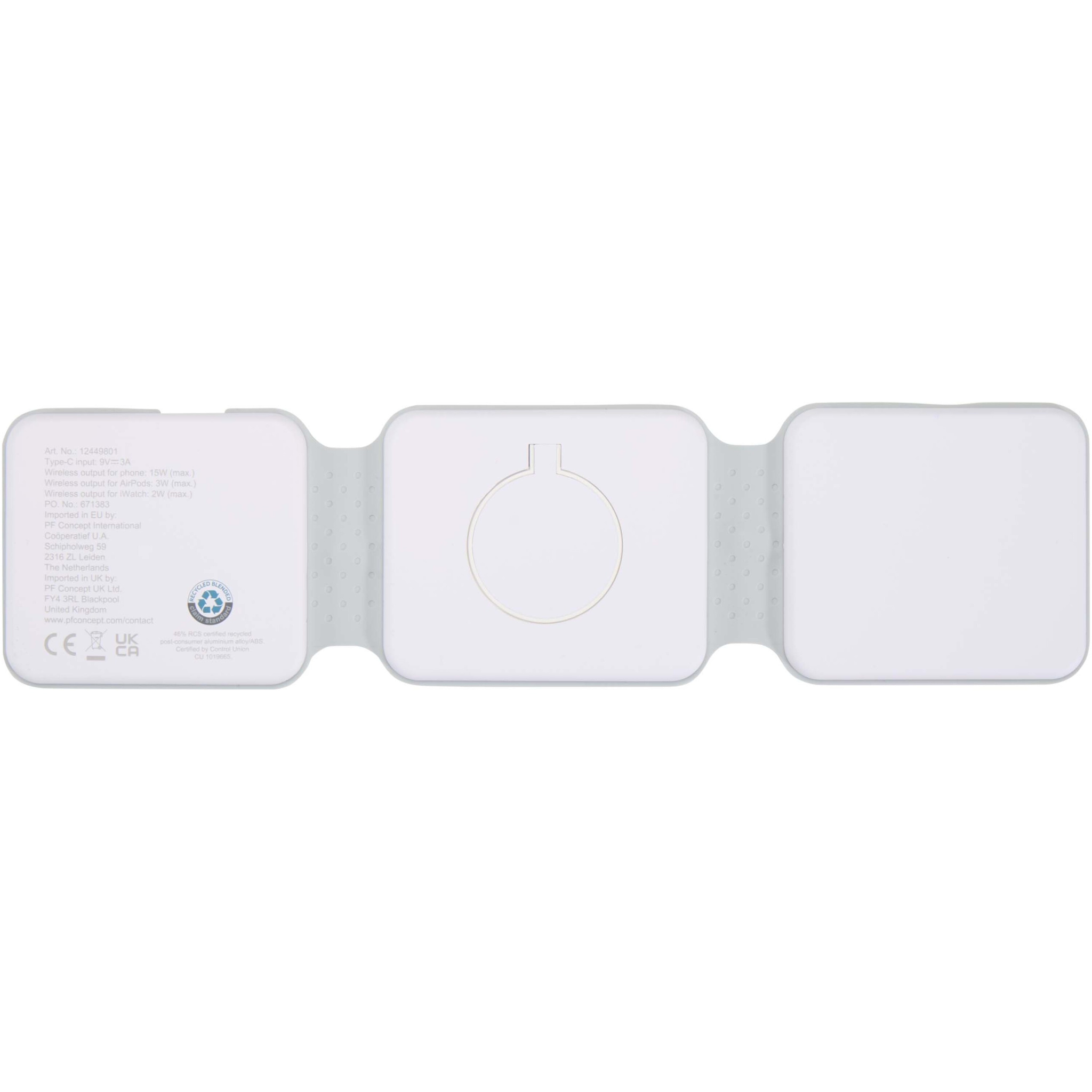 The Armus 3-in-1 wireless charger is made from recycled plastic, and can power a smartphone, AirPods, and iWatch all at once, with up to 15W wireless charging speed. Its foldable, magnetic design lets you place your phone in landscape mode – perfect for watching while charging. Compatible with all wireless charging phones, including iPhone 12 and newer (or phones with a magnetic ring). Type-C connector included.