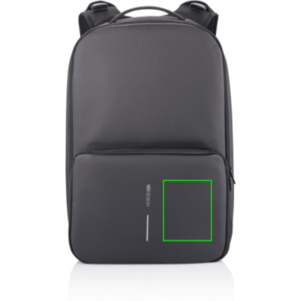 Flexible and practical, the Flex Gym bag is the first business backpack and gym bag in one. Quickly convert this backpack from business to gym style by expanding the front pocket from 16 to 24 litres. The anti-theft design with no front access and hidden zippers in the main compartment will ensure that you carry your professional devices securely. With the RFID-protected pocket on the back, you can safely store your wallet, cell phone, or credit cards. Additionally, this backpack keeps you powered with a fast USB charging port on the shoulder strap where you can also find a sunglasses holder. The Flex Gym bag is the perfect backpack whether you are on your way to work, university, or the gym. Made from R-pet fabric with the AWARE™ tracer. With AWARE™, the use of genuine recycled fabric is guaranteed. 42% recycled content. Registered design®