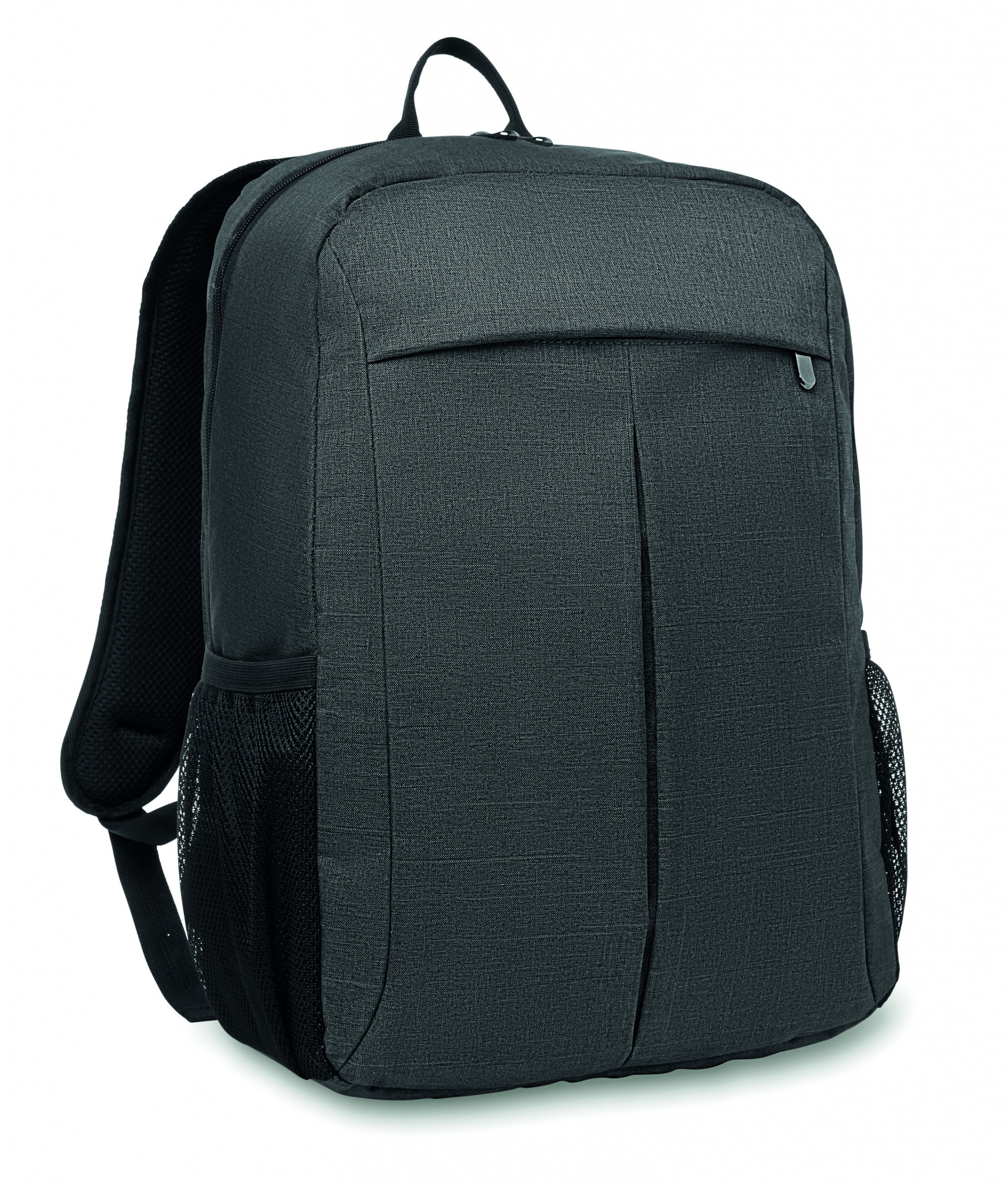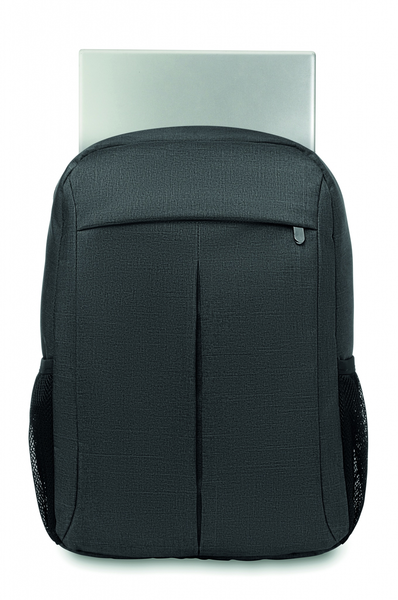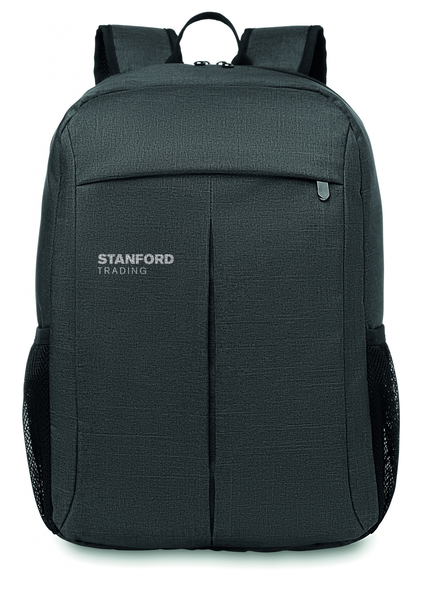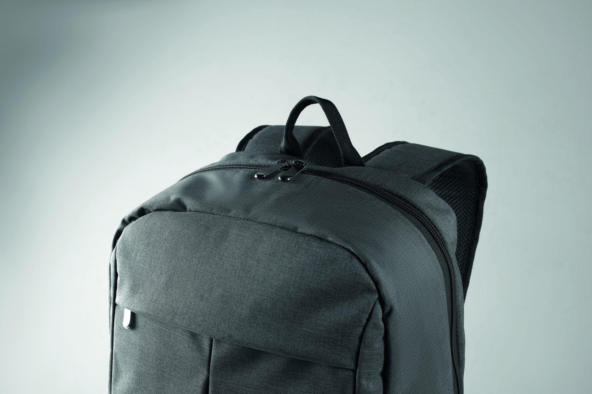 15 Inch computer backpack in 360D 2 tone polyester. Includes one internal 15 inch laptop compartment and one main front part with zipper pocket. Padded back and shoulder straps. Additional pocket for Tablet compartment. Trolley holder back side.