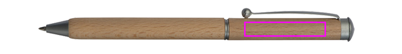 Twist mechanism wooden ballpen with blue-writing metal refill and wooden case. Your logo is engraved below the clip.