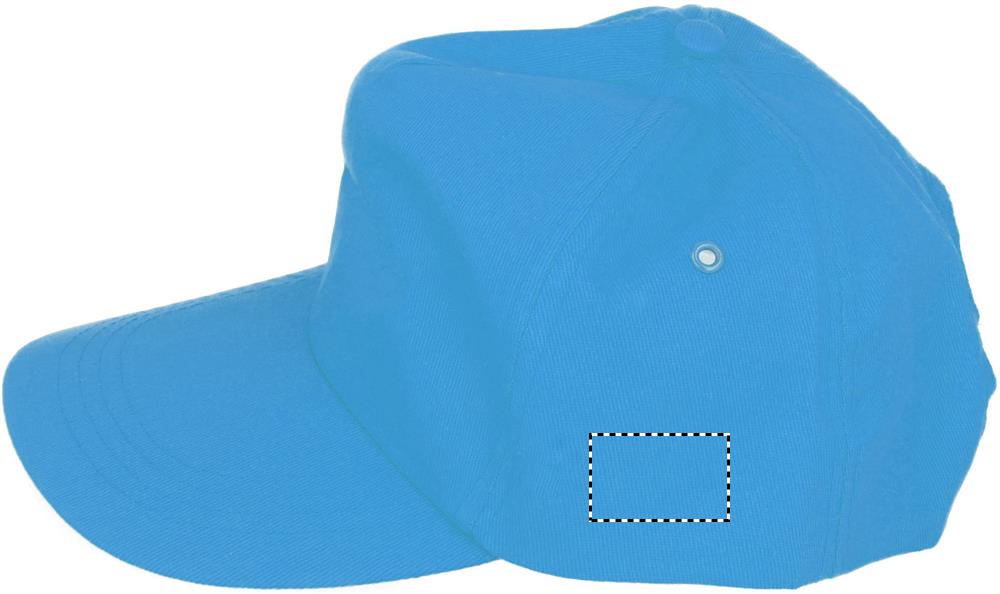 5 panel baseball cap in cotton twill 160 gr/m2 with adjustable plastic snap closure. 2 metal eyelets with matching colour plating. Size 7 1/4.