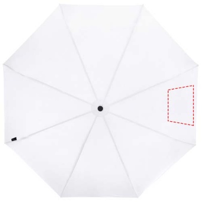 Manual folding umbrella with a recycled PET pongee polyester canopy. The sturdy metal shaft and high quality frame with fibreglass ribs offers maximum flexibility in windy conditions. Supplied with a pouch and can easily fit a handbag or backpack for convenient carrying. Together with the wooden handle and the recycled PET pongee polyester canopy it offers a sustainable choice. Available in an wide variety of contemporary colours with a large decoration area on each of the panels.