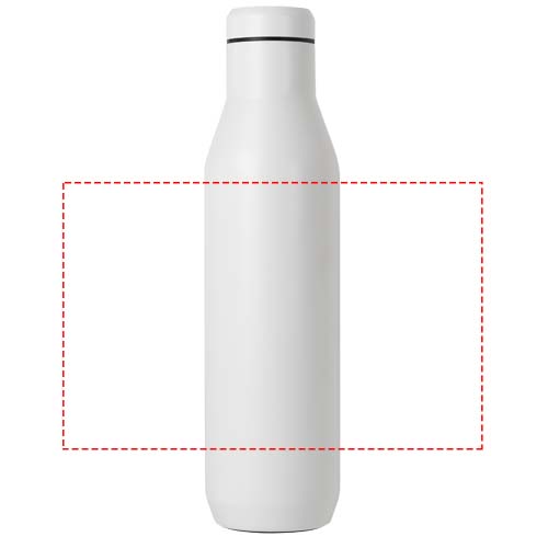 Enjoy your wine with the Horizon 750 ml wine bottle. The double-walled vacuum insulated construction maintains the ideal temperature of your favourite wine and prevents condensation with its external powder coating finish. Whether you’re enjoying a picnic outside or hosting a dinner party, this wine bottle is designed to keep your wine cold for 35 hours, and if you are using the bottle for mulled wine it will stay hot for up to 25 hours. With a generous 750 ml capacity, it can be filled with a full bottle of wine. Lifetime guarantee for manufacturing defects. Non-slip silicone base. Free of BPA, BPS and BPF.
