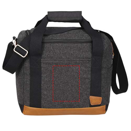 Part of the Field & Co.® Campster Series. Inspiration was drawn from retro camping and old school scout looks combined with modern needs. This stylish cooler bag combines wool/poly material and vinyl accents with the function of an insulated cooler with bottle divider. Die cut inserts slip together and create individual compartments for twelve individual 350ml bottles. When not in use they collapse and can be stored in the base of the bag. Includes a Field & Co.® branded bottle opener.