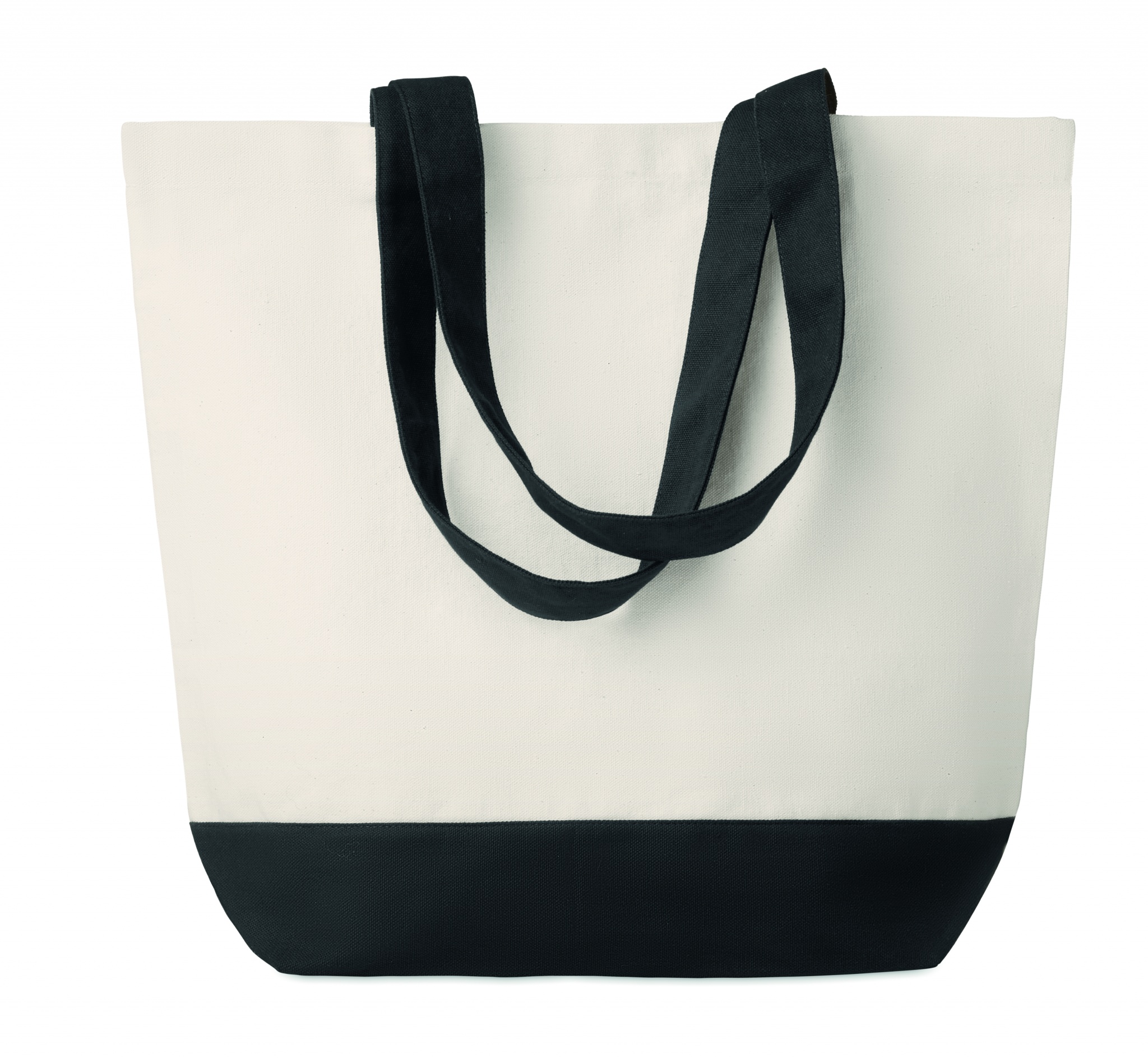 Canvas 280gr/m² shopping beach bag with coloured bottom detail and matching handles (inside pocket).