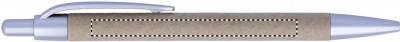 Push type ball pen with carton barrel and ABS fittings. Blue ink.