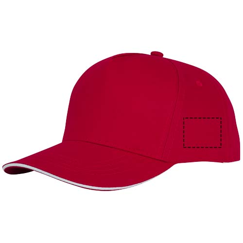 The Ceto 5 panel sandwich cap – style and practicality harmoniously combined. Made from 175 g/m² cotton twill, it offers not only durability but also a soft and breathable feel. Featuring a pre-curved visor and a sandwich design, the cap provides sun protection with a touch of elegance. With a structured front panel and cotton inside details, this cap boasts both sophistication and comfort. With a head circumference of 58 cm, it guarantees a tailored fit for a variety of head sizes. The fabric hook and loop fastener provide effortless adjustability, allowing to achieve the perfect fit. The Ceto cap is the ideal accessory for any occasion, whether it's a casual outing or an outdoor adventure.