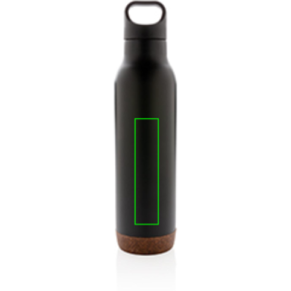 Vacuum insulated leak proof flask with durable 304 SS inside and 201 outside. Unique cork detail on the bottom. Keeps your drinks hot for up to 5h and cold up to 15h. Content: 600ml.