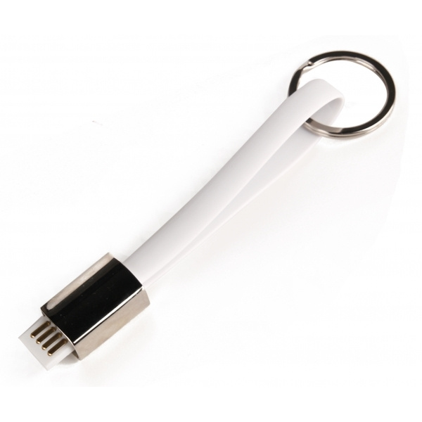 Data transfer cable and keyring, white