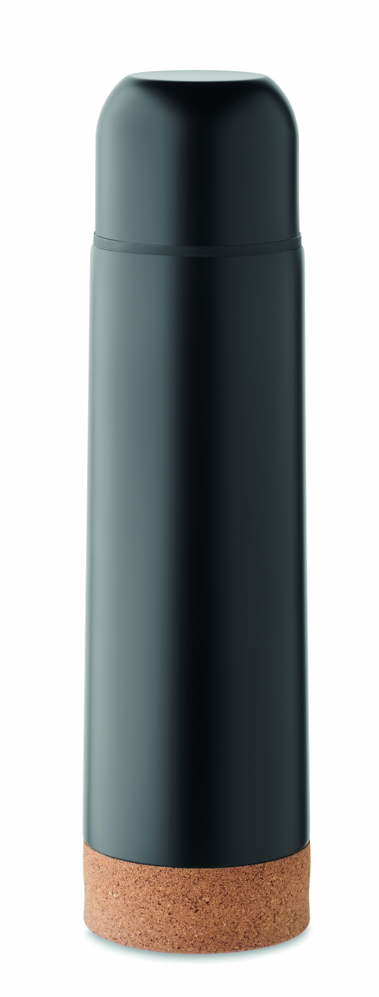 Double wall vacuum insulated flask in recycled stainless steel (90% recycled stainless and 10% stainless steel) with cork detail base. Leak- free. Capacity: 500 ml.