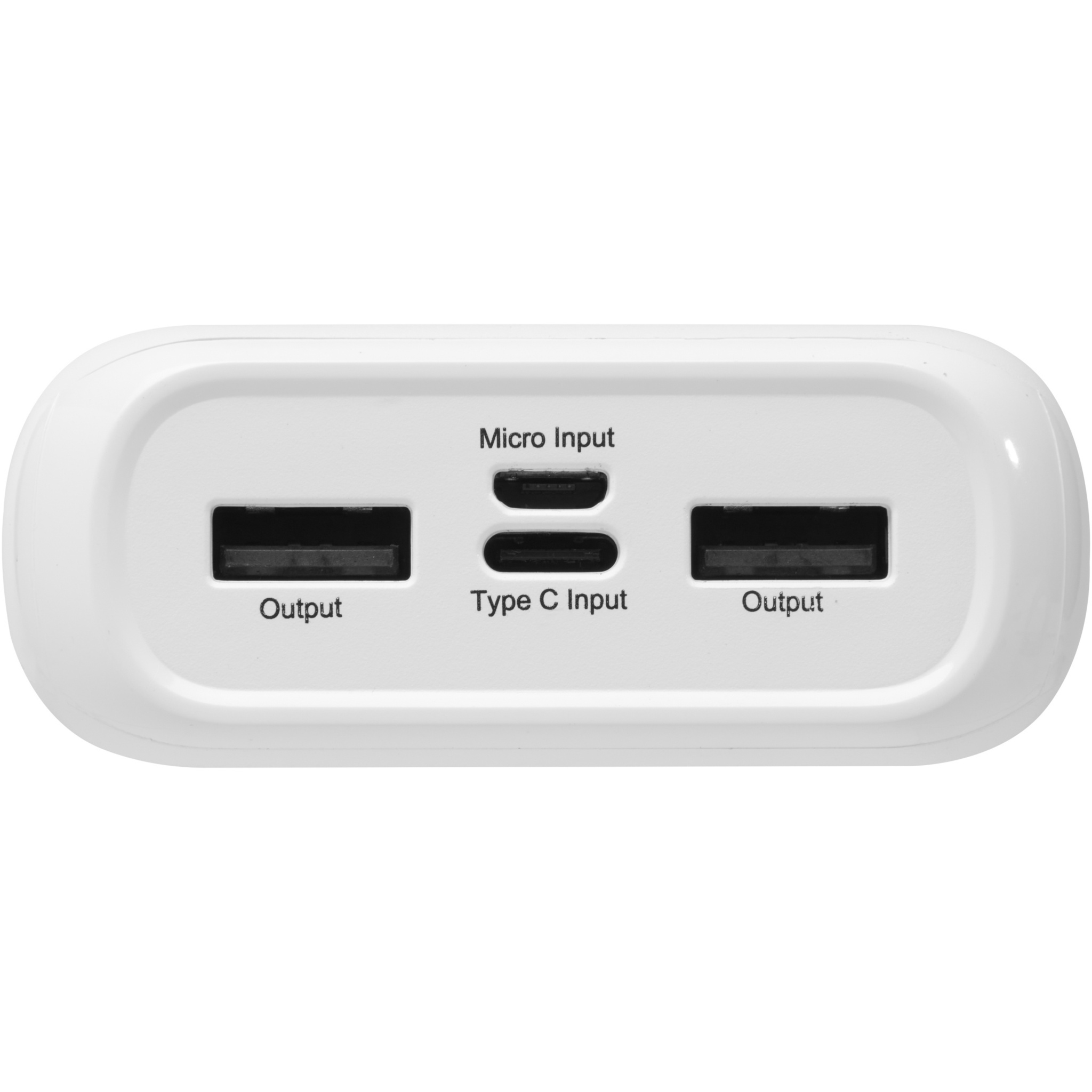 The Electro 20.000 mAh power bank is made from recycled plastic and has 4 ports to enable fast charging for multiple mobile devices simultaneously. This power bank contains a grade A lithium-ion battery and features 4 LED indicators to show its remaining battery capacity. Micro USB/Type-C input 5V/2A. USB output 1 5V/1A. USB output 2 5V/2.1A max. Total power 10.5W. Comes with a 30 cm TPE USB A to Type-C charging cable. Delivered with a kraft paper gift box and instruction manual.