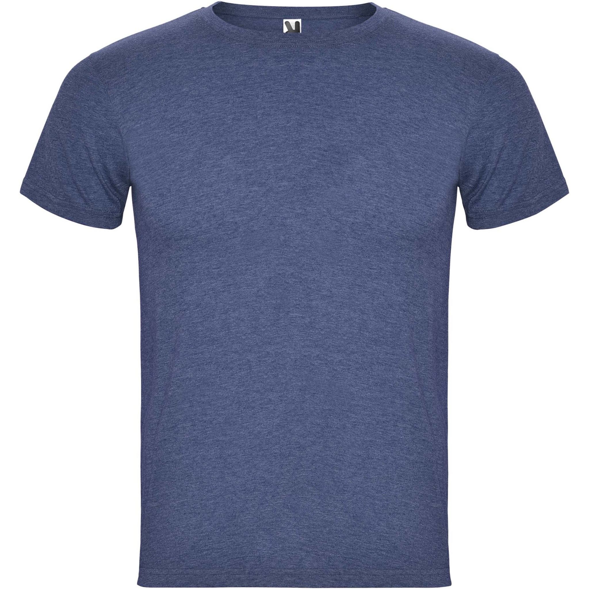 Short-sleeve t-shirt with heathered effect. 1x1 ribbed crew neck with interior reinforced covered seams. Tubular fabric. Removable label.