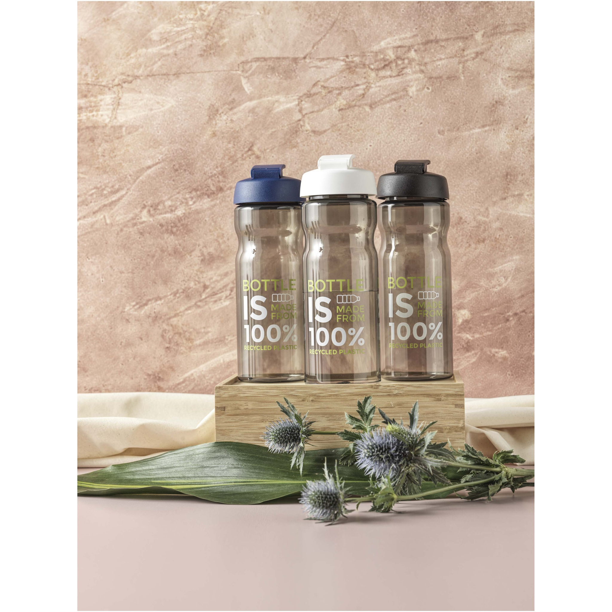 Single-wall sport bottle with ergonomic design. Bottle is made from Prevented Ocean Plastic. Plastic is collected within 50 km of an ocean coastline or major waterway that feeds into the ocean. This is then sorted and transformed into high quality, food-safe recycled plastic. Features a spill-proof lid with flip top, available in multiple colours. Volume capacity is 650 ml. Mix and match colours to create your perfect bottle. Contact us for additional colour options. Made in the UK. Packed in a recycled PE plastic bag. Due to the nature of the recycled material, there may be some small marks on the body of the bottle.