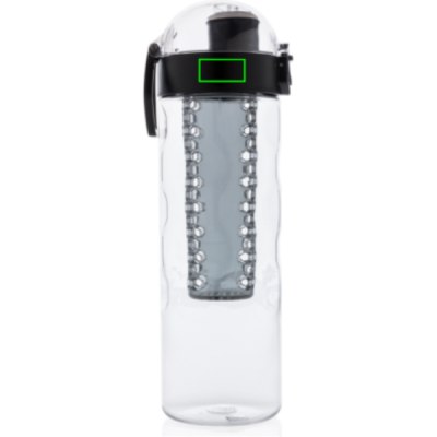 Add some healthy fruit flavours to your water. This design bottle with honeycomb details offers convenient single-handed drinking. Push the button and the lid flips open. There’s a special locking mechanism to keep users from accidentally pressing the button. Including carrying handle. This infuser bottle is made of a durable and innovative tritan material . Odourless and 100% BPA-free. Content 700ml. Registered design®