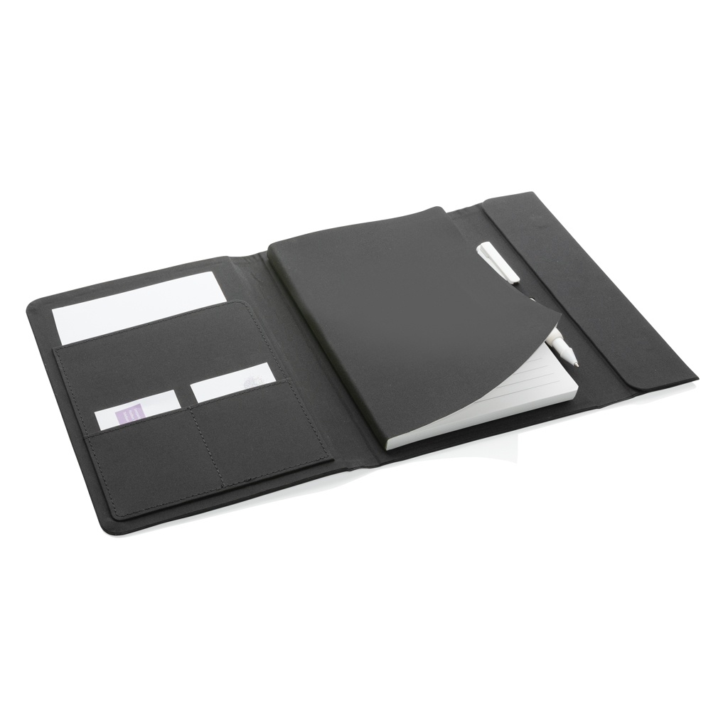 Keep all your work essentials organised in this beautiful A5 Aware™ RPET portfolio. Inside the portfolio you can find a matching notebook. The notebook contains 64 sheets/128 sheets cream coloured lined 80gm/s paper. Inside you will find 1 big sleeve pocket, 2 card slots and a pen loop. Magnetic closure. With AWARE™ tracer that validates the genuine use of recycled materials. Each portfolio has reused 6.5 0.5L PET bottles. 2% of proceeds of each Impact product sold will be donated to Water.org. PVC free.