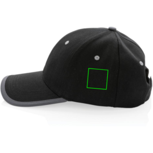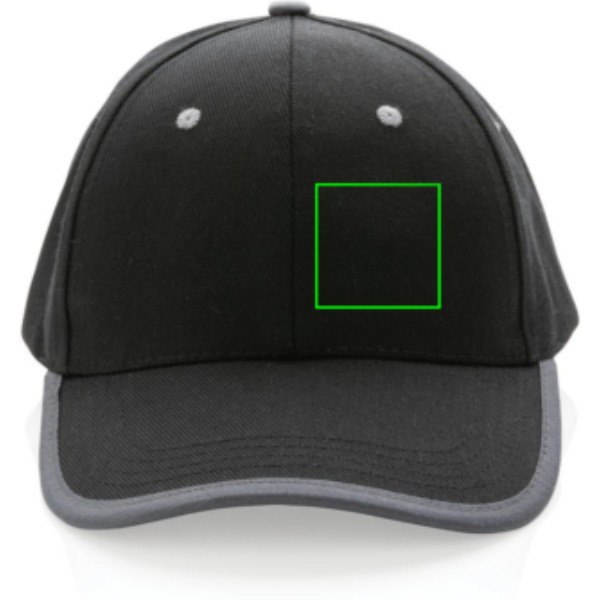 Tell a true story about sustainability and wear it with pride! This 6 panel contrast cap with curved visor is made with brushed recycled 280gr cotton that is embedded with AWARE™ tracer technology. With AWARE™, the use of genuine recycled fabric materials and water reduction impact claims are guaranteed. Save water and use genuine recycled fabrics. If you choose this item you save 250 litres of water. With the focus on water, 2% of proceeds of each Impact product sold will be donated to Water.org. The contrast cap has a dark grey binding and velcro closure. Water savings are based on figures when compared to conventional fibre. This calculated indication is based on reliable LCA data as published by Textile Exchange in their Material Snapshots 2016.