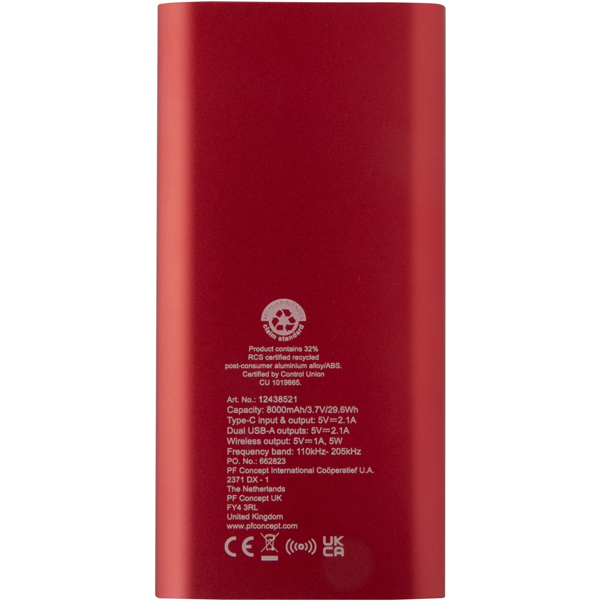 Juice 8000 mAh Type-C recycled aluminium wireless power bank, Red