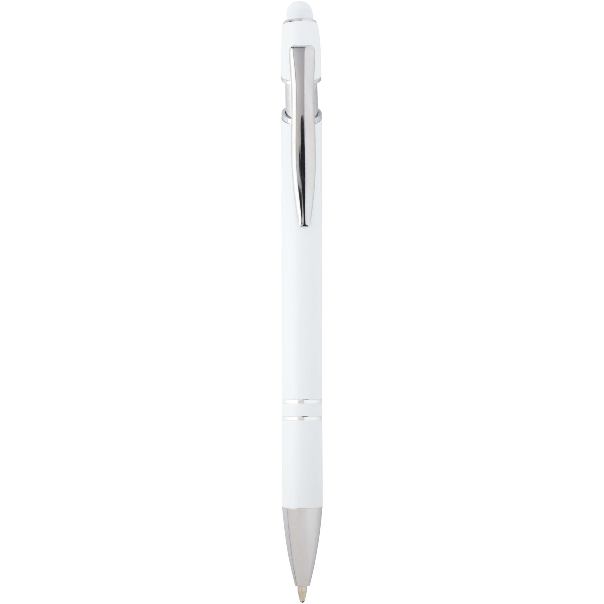 The Kish ballpoint pen with silver finish has a barrel made of recycled aluminium with a touch stylus made of silicone. Recycled aluminium reduces the amount of waste in landfills and helps to conserve natural resources aiming to reduce greenhouse emissions. Ink colour: Black. Writing length: 800 metres. Nib size: 1.0 mm.