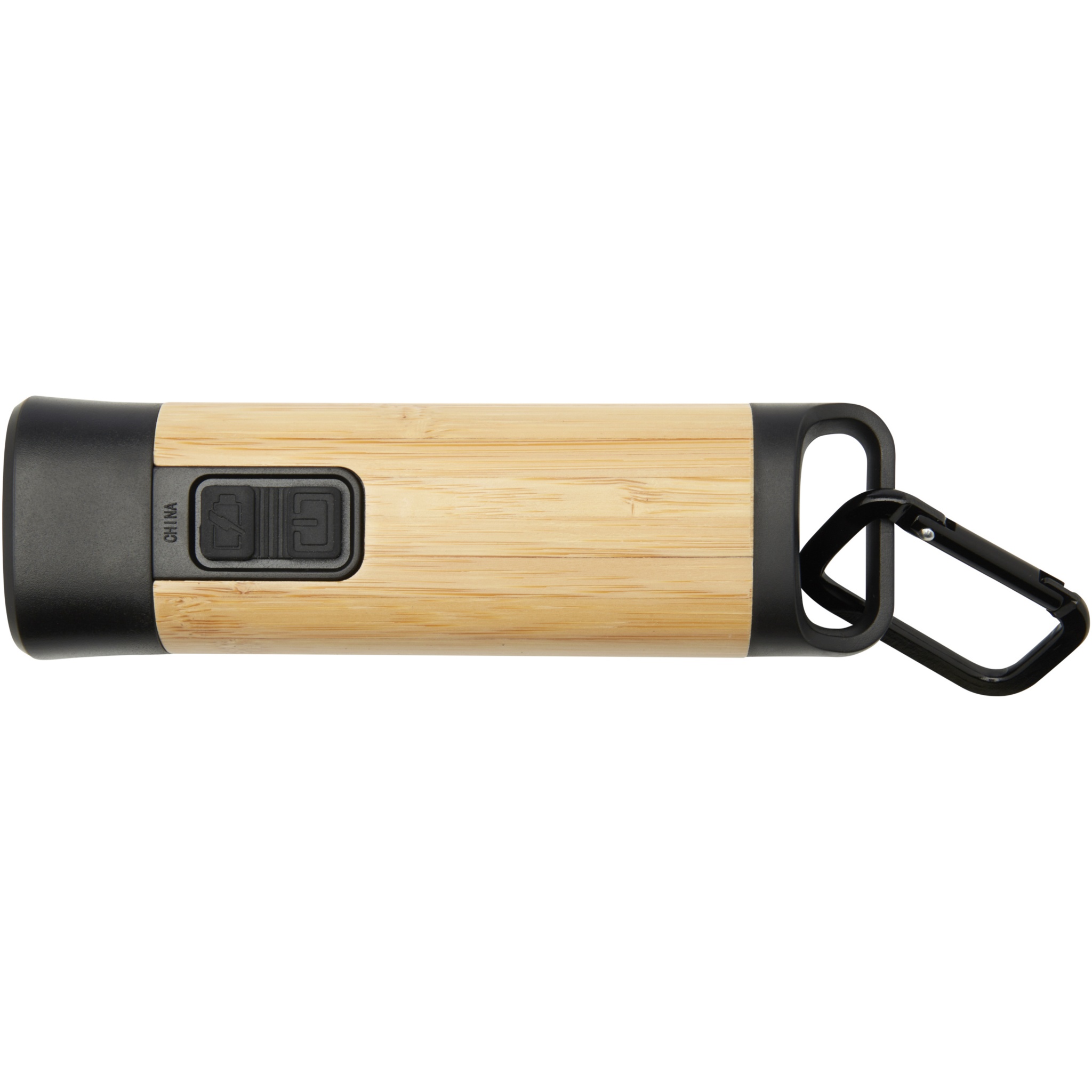 The Kuma torch with carabiner is crafted from certified bamboo and 41% RCS certified recycled plastic, making it a more sustainable choice for exploring the outdoors, tackling DIY projects, or navigating power outages. Featuring a powerful 3W COB light source available in 3 different light modes, the Kuma produces 80 lumens of light with a beam distance of up to 100 meters when fully charged. Equipped with a high-capacity 1200 mAh Li-ion 18650 battery, the torch ensures longevity and reliability, producing 3.5-4.5 hours of continuous illumination on a single charge. The included aluminium carabiner allows for easy attachment to backpacks, belts, or gear, making it a trusty companion for camping or hiking. Since bamboo is a natural product, there may be slight variations in colour and size per item, which may affect the final printing outcome. Delivered with a 30 cm TPE Type-C charging cable, and packed in a STAC gift box from sustainable sources.