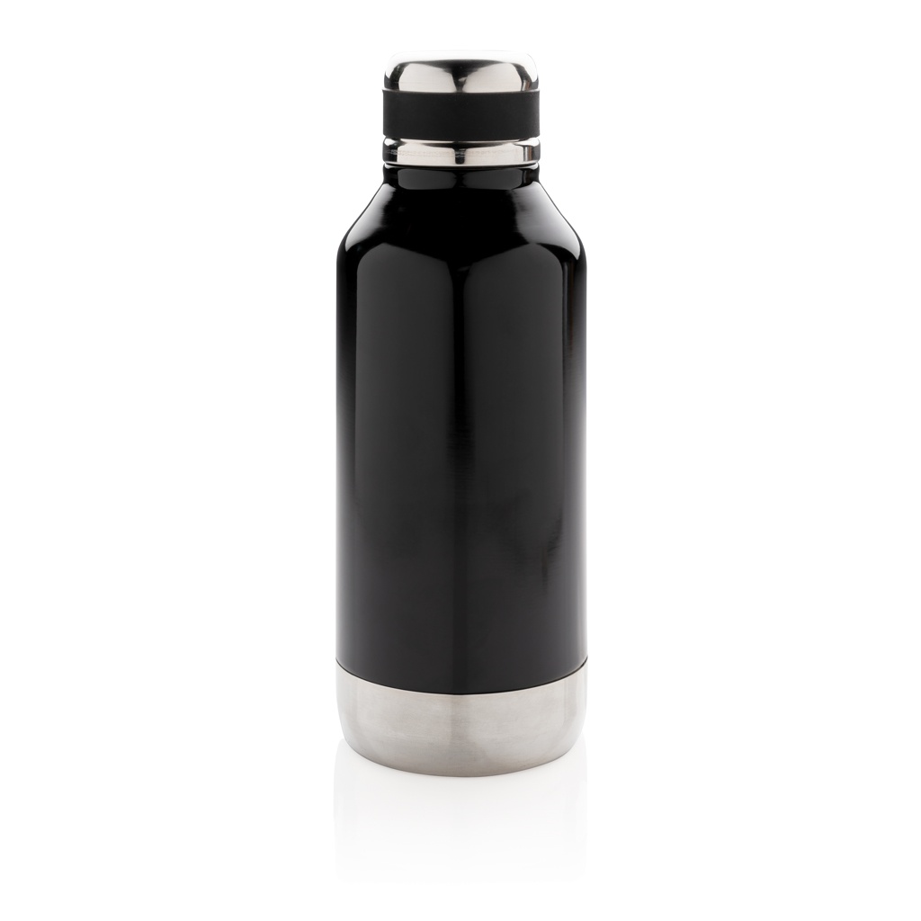 Leak proof vacuum bottle with logo plate, black