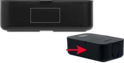 Lunch box made of PP with phone stand feature built in.