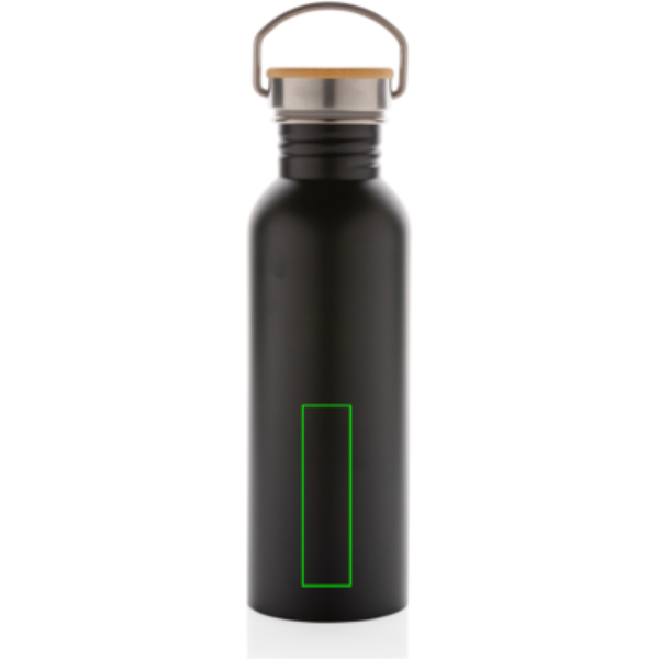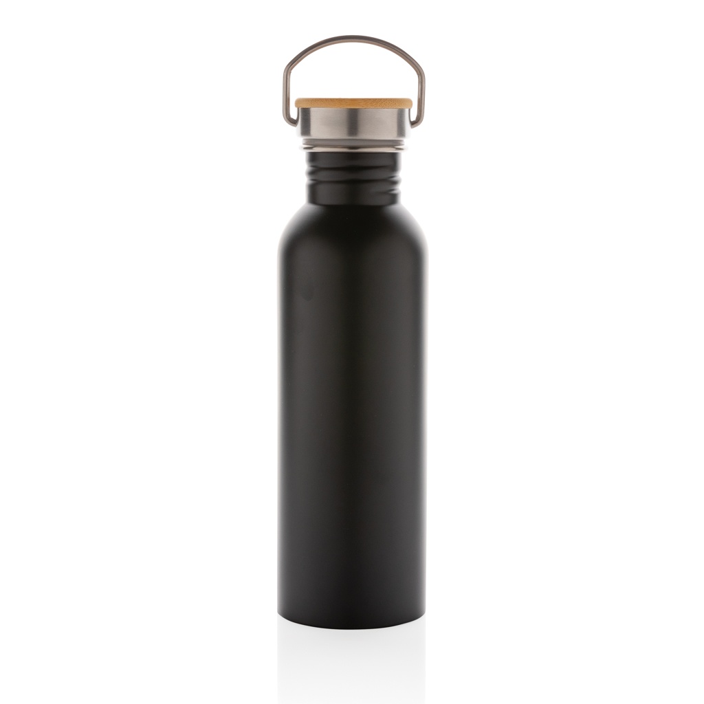 Modern stainless steel bottle with bamboo lid, black