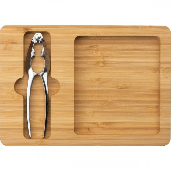 Beautiful bamboo bowl with metal nutcracker. Give your logo message a particularly tasty setting with this article. We print your logo to the bamboo bowl by laser engraving.