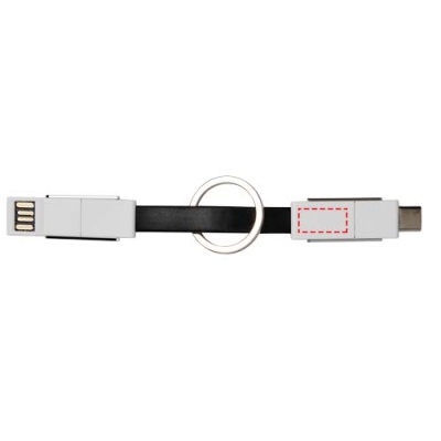 A 4-in-1 cable that covers all charging needs in one package. It features a USB type A, Type-C, and a 2-in-1 tip that is compatible with both iOS and Android devices. It can be used for charging and data transfer. Comes with a keychain and has magnets for convenient carrying.