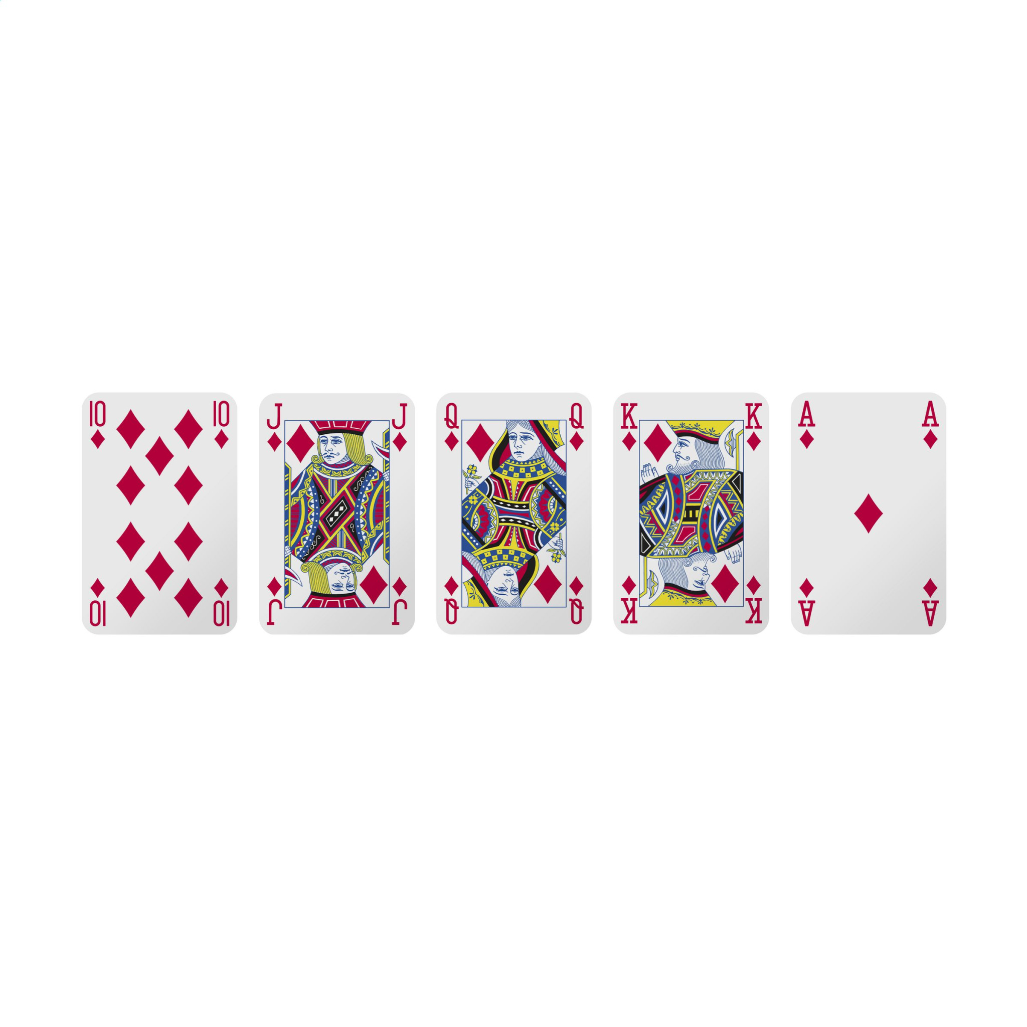 Playing cards made from sturdy 300-gram cardboard. These decks consist of 52 playing cards and 2 jokers. Packaged in a cardboard box with cellophane. You can add your full-colour design onto the back of the cards and also onto the box, creating a unique, personalised deck of cards to promote your brand with every game.
