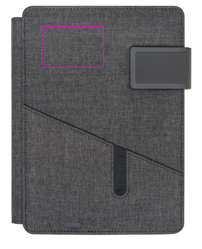 Powerbank folder A5 with integrated powerbank (4,000 mAh), notebook (128 pages) and slip pocket on the front. Input: 5V/1A - Output: 5V/2.1A. We will print your logo on the front.
