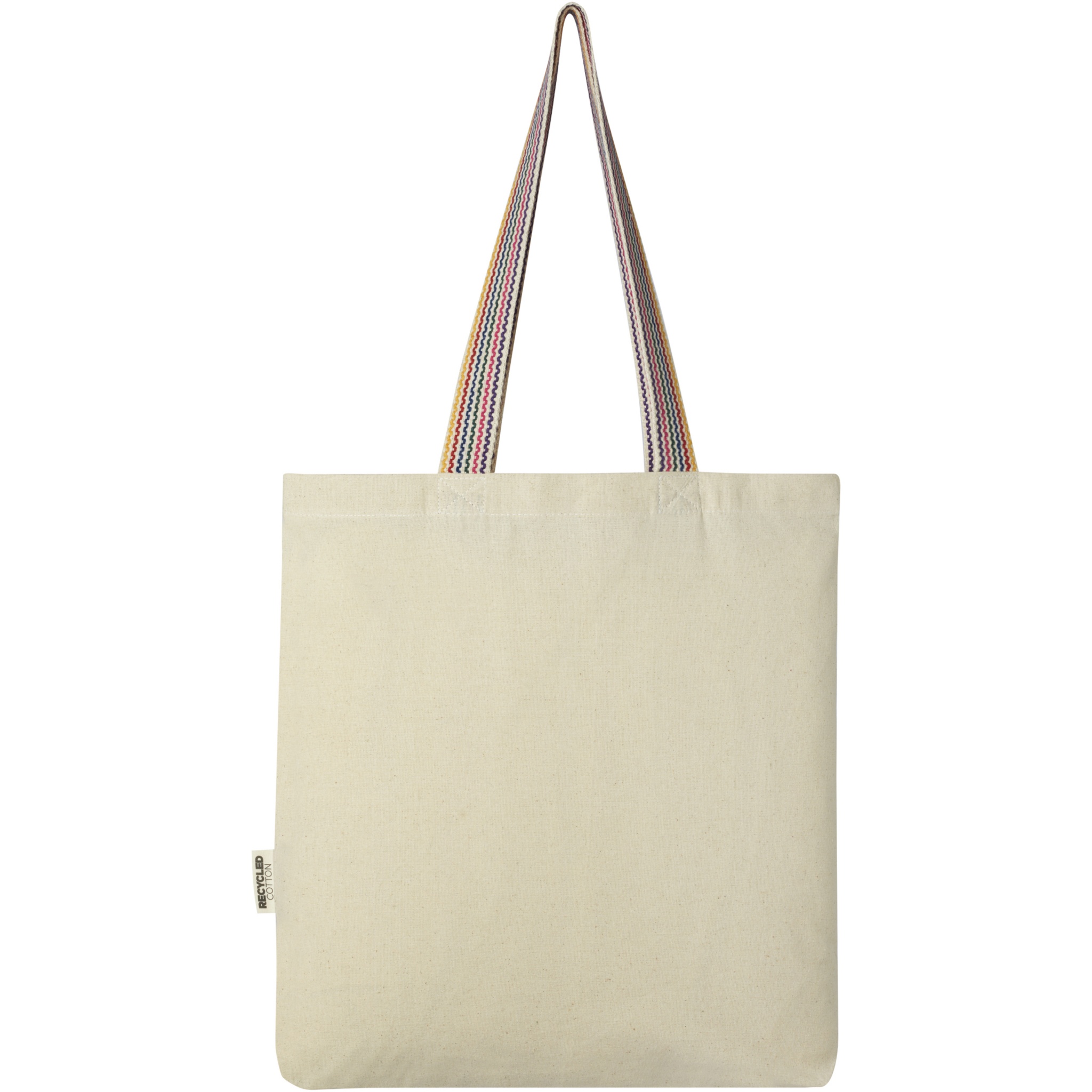 The Rainbow 180 g/m² tote bag is an instant upgrade to the regular cotton tote. Made from pre-consumer recycled cotton, this grocery tote features 25 cm rainbow webbing grab handles, and a 3.5 cm gusset bottom for a bit more storage room. Resistance up to 5 kg weight.