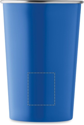 Reusable recycled stainless steel (90% recycled stainless and 10% stainless steel) cup. Capacity: 350 ml. As this is a single walled mug heat transfer can still occur.