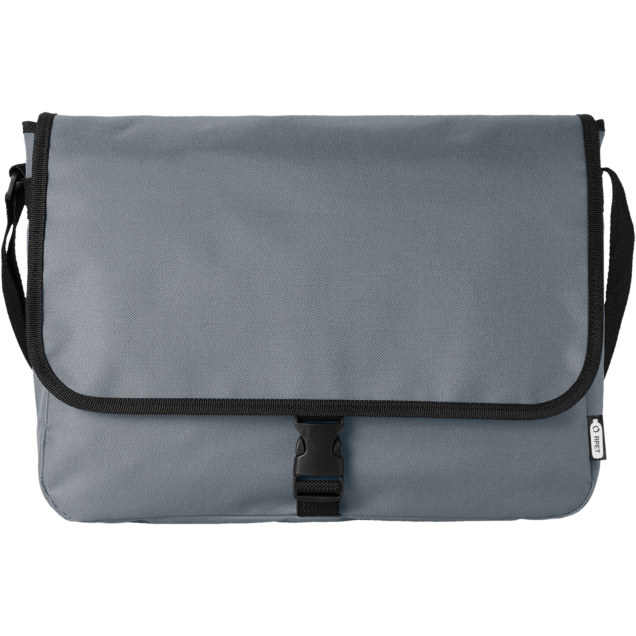Shoulder bag made of recycled PET plastic with an adjustable shoulder strap. Features a main compartment that closes with a flap and a buckle closure.
