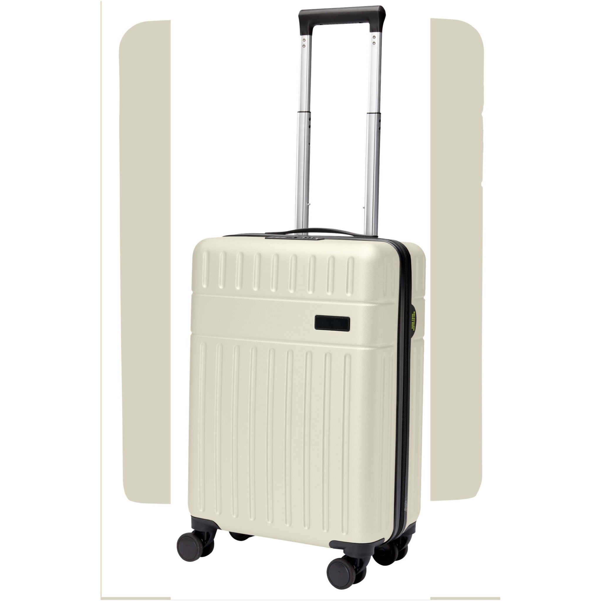 Constructed with impact-resistant recycled plastic and RPET lining, the 20” Rover cabin trolley stands for sustainability as much as quality. It features a double-tube aluminium frame, 360 degree 4-wheel spinner, an integrated TSA combination lock, an easy grab handle for comfort, and interior divider organiser compartments. Can be brought as hand luggage on most mainstream airlines. This trolley is GRS certified, including the printing, making it a more sustainable choice.