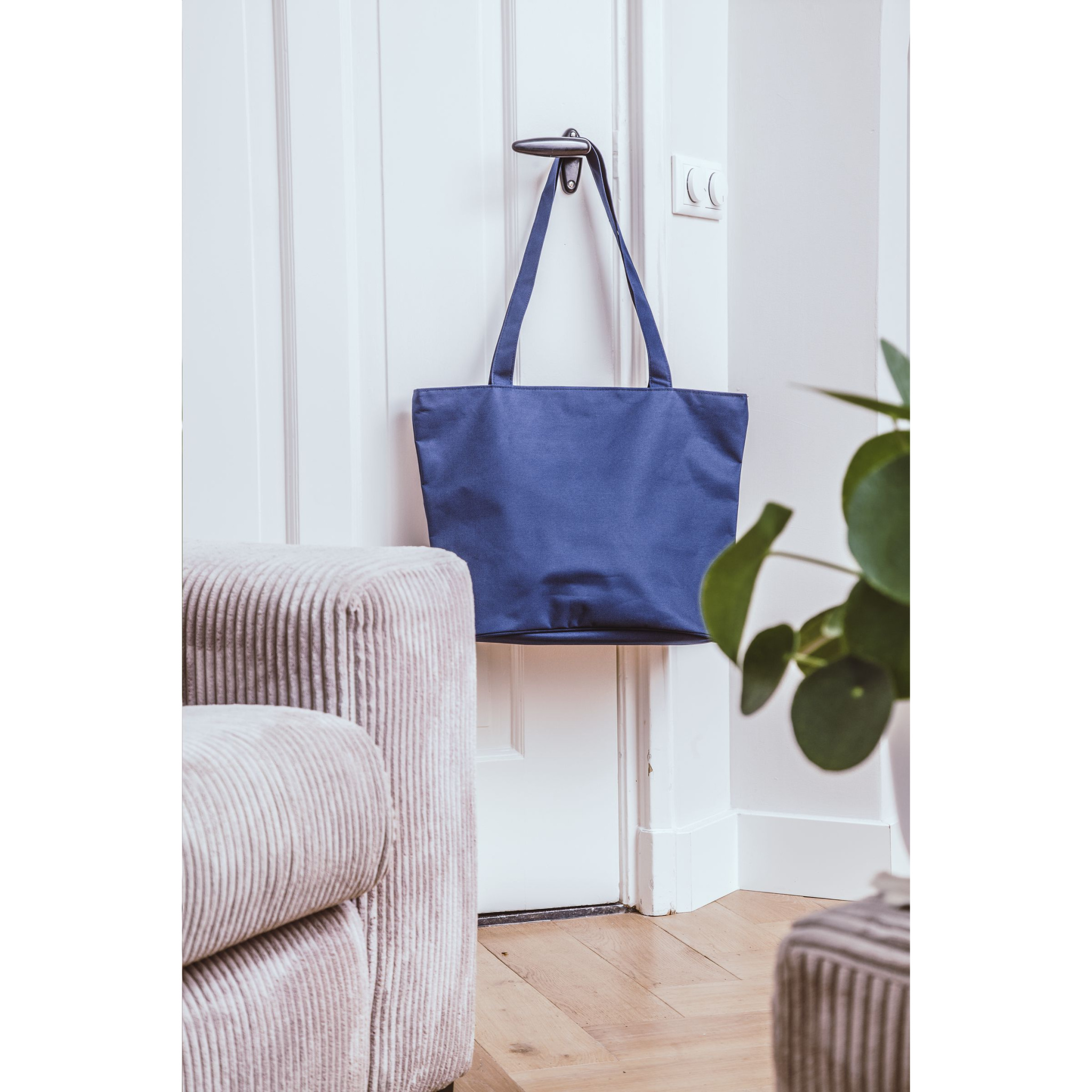Beautiful, rugged bag made from 600D polyester with strengthened interior, long handles, zipper and storage pouch with a zipper. The broad bottom has a beautiful and sleek finish with round piping. Multipurpose use as a shopper, shopping bag and beach bag.